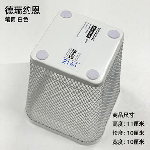 化妆刷收纳筒笔盒大容量多功能简约办公用品 得力笔筒圆形金属网格笔插文具商务笔类收纳简约网纹创意时尚