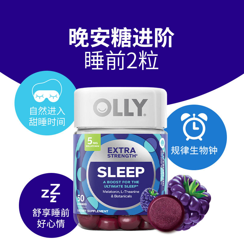 褪黑素安瓶5mg软糖茶氨酸gaba助眠闪睡50粒sleepwell OLLY强化版