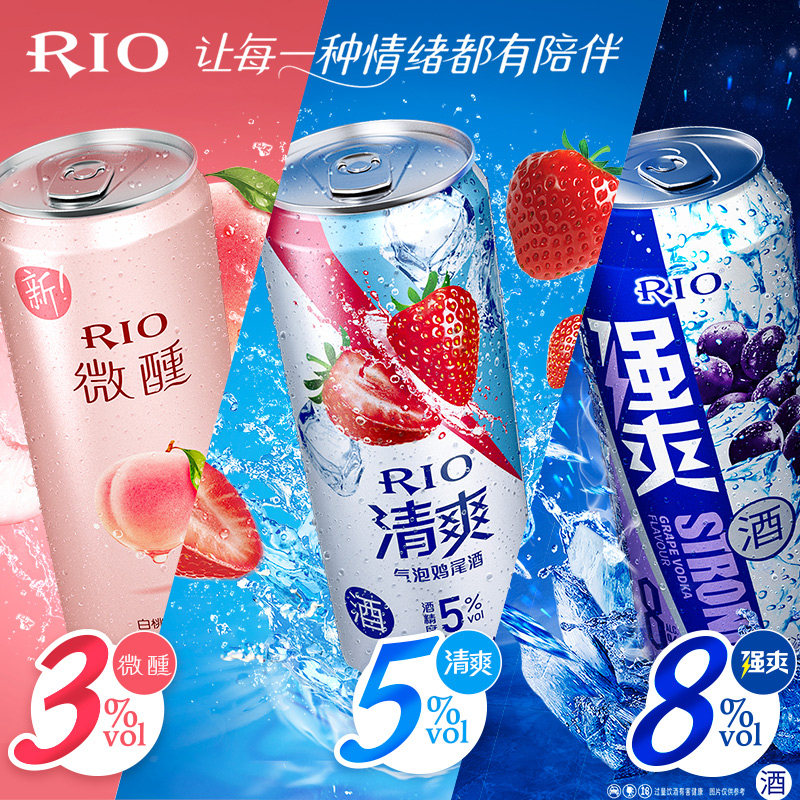 5罐气泡果酒甜酒 RIO锐澳预调鸡尾酒低度酒5度清爽8度强爽330m