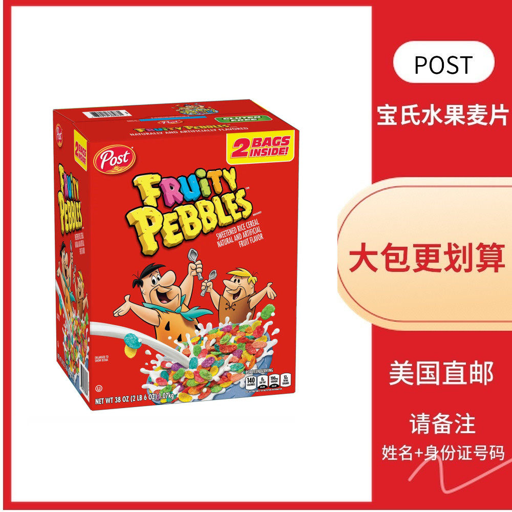 pebbles宝氏水果麦片营养早餐 冰淇淋盖顶1070g fruity 美国post由
