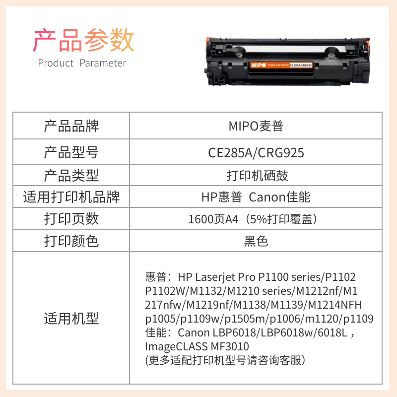 为您提供商品M1130 MF3010粉盒激光打印机 麦普CRG925 适用HP惠普P1102 LBP6018 LBP6000 佳能 CE285A硒鼓 M1212NF的详细介绍,