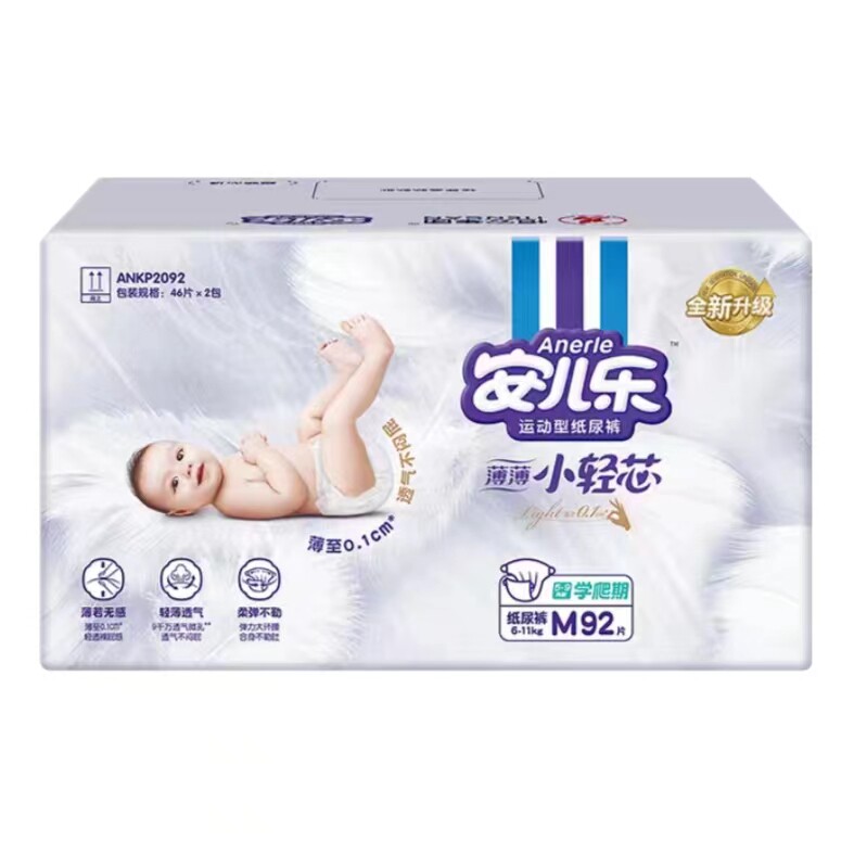 M92L80XL70XXL62超薄透气尿不湿xl热卖 安儿乐小轻芯纸尿裤 日期新由