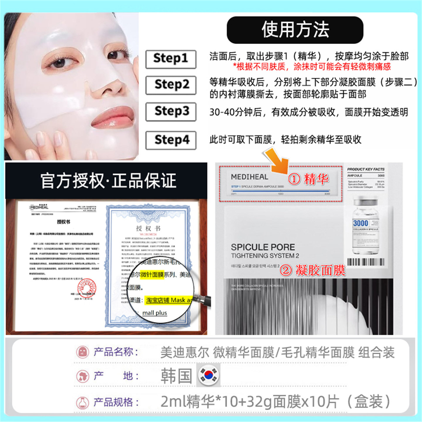 为您提供商品韩国mediheal美迪惠尔微针面膜胶原精华凝胶补水紧致毛孔弹润提拉的详细介绍,