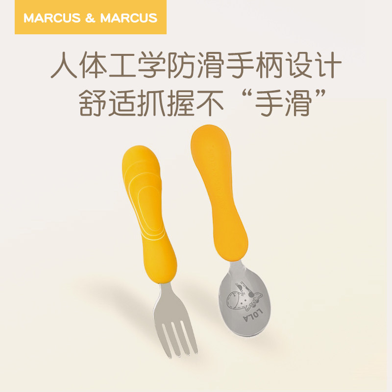 marcus马库狮儿童餐具硅胶围兜宝宝吸盘餐盘婴儿训练勺叉辅食套装