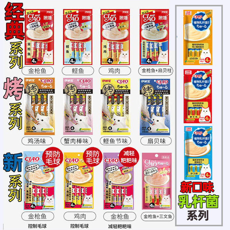 为您提供商品伊纳宝猫条192支整箱ciao成幼猫无诱导剂湿粮包啾噜猫咪零食猫条的详细介绍,