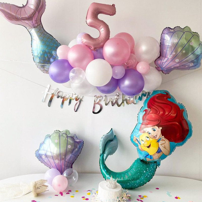 PanParty美人鱼海洋主题铝膜气球贝壳造型粉色鱼尾巴儿童生日布置