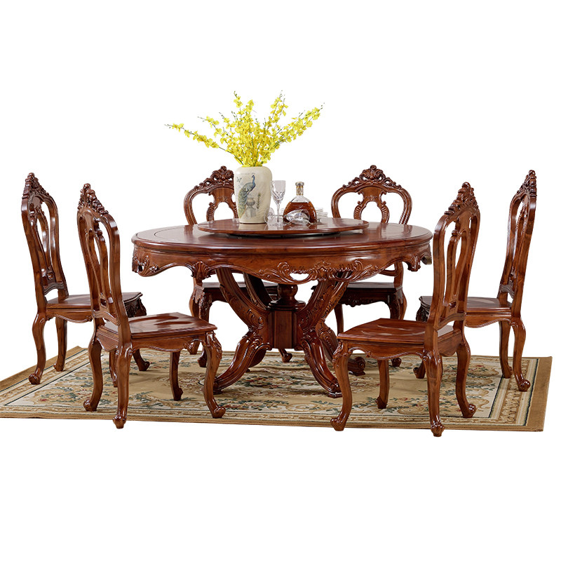 欧式 纯柚木餐桌圆桌五年质保厂家直销 美式 上海金帝柚木家具中式