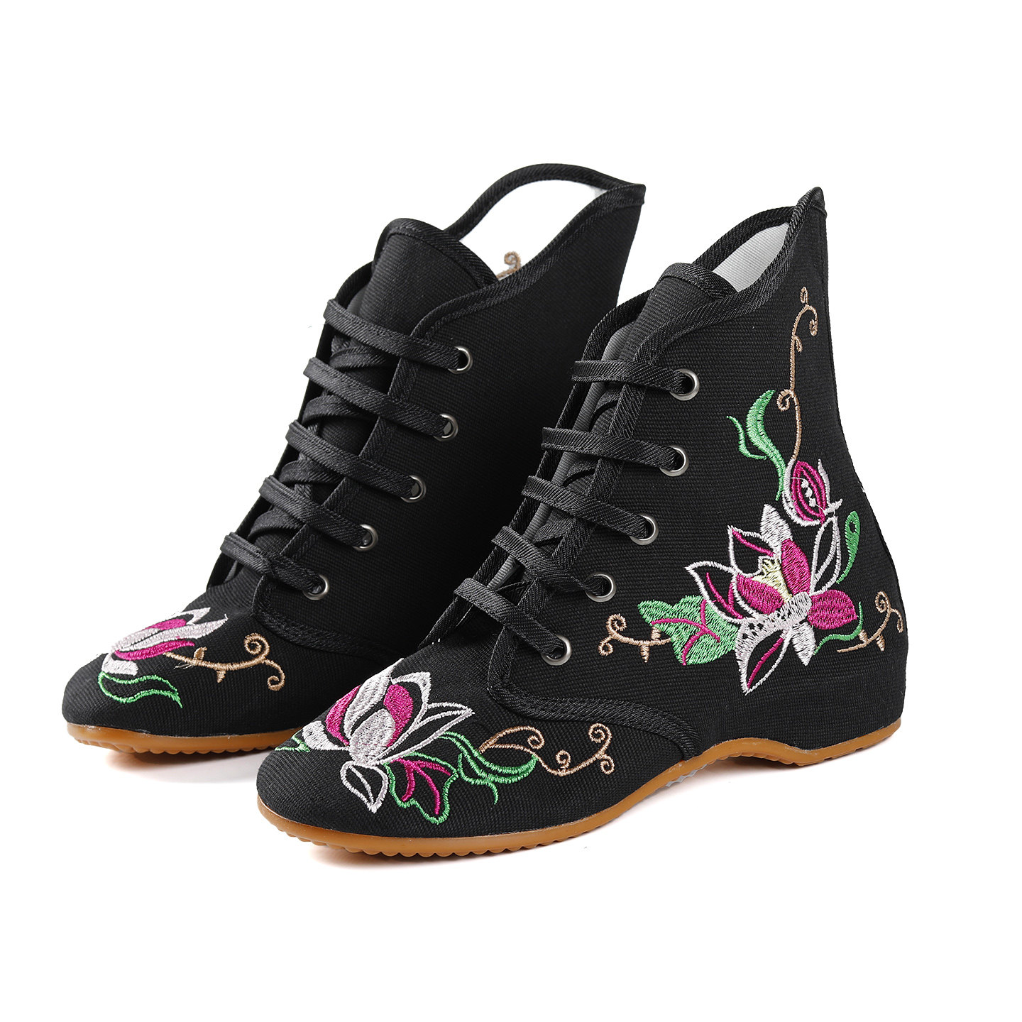 内增高布靴民族风女靴坡跟绣花靴休闲加绒棉靴单靴子 秋老北京布鞋