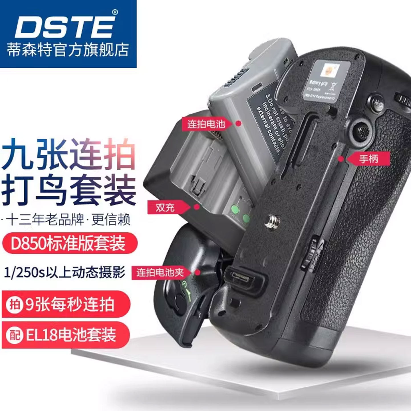适配尼康D850单反相机 9张每秒高速连拍续航供电池盒 D18竖拍手柄 蒂森特MB由