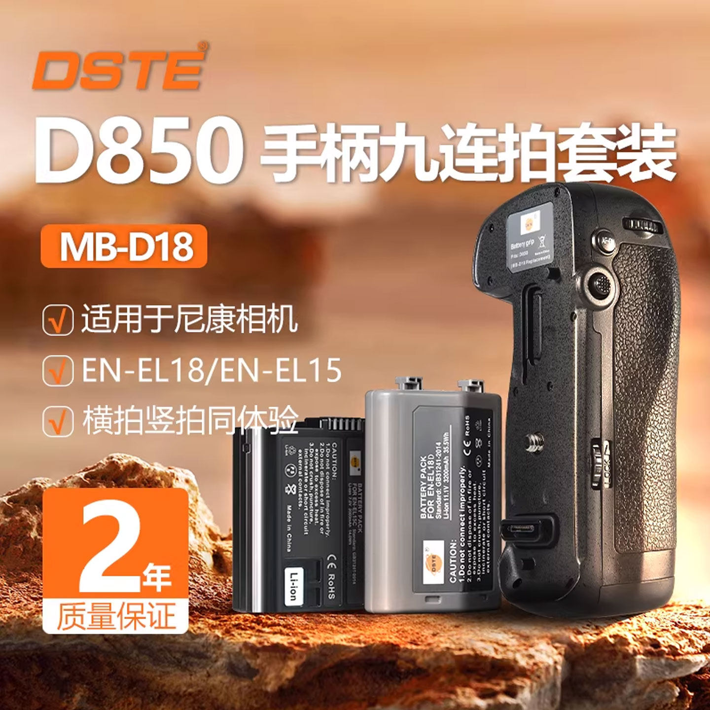 适配尼康D850单反相机 9张每秒高速连拍续航供电池盒 D18竖拍手柄 蒂森特MB