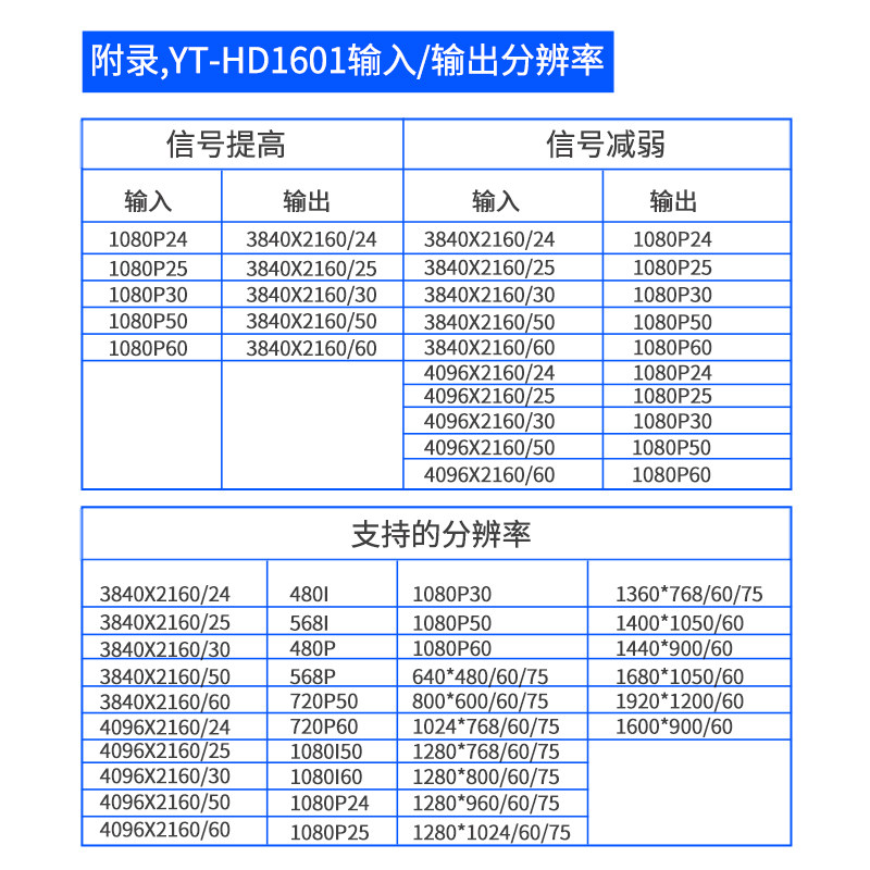 为您提供商品HDMI分辨率转换器4K60HZ转1080P视频转接器720P转4K 优霆HD1601的详细介绍,