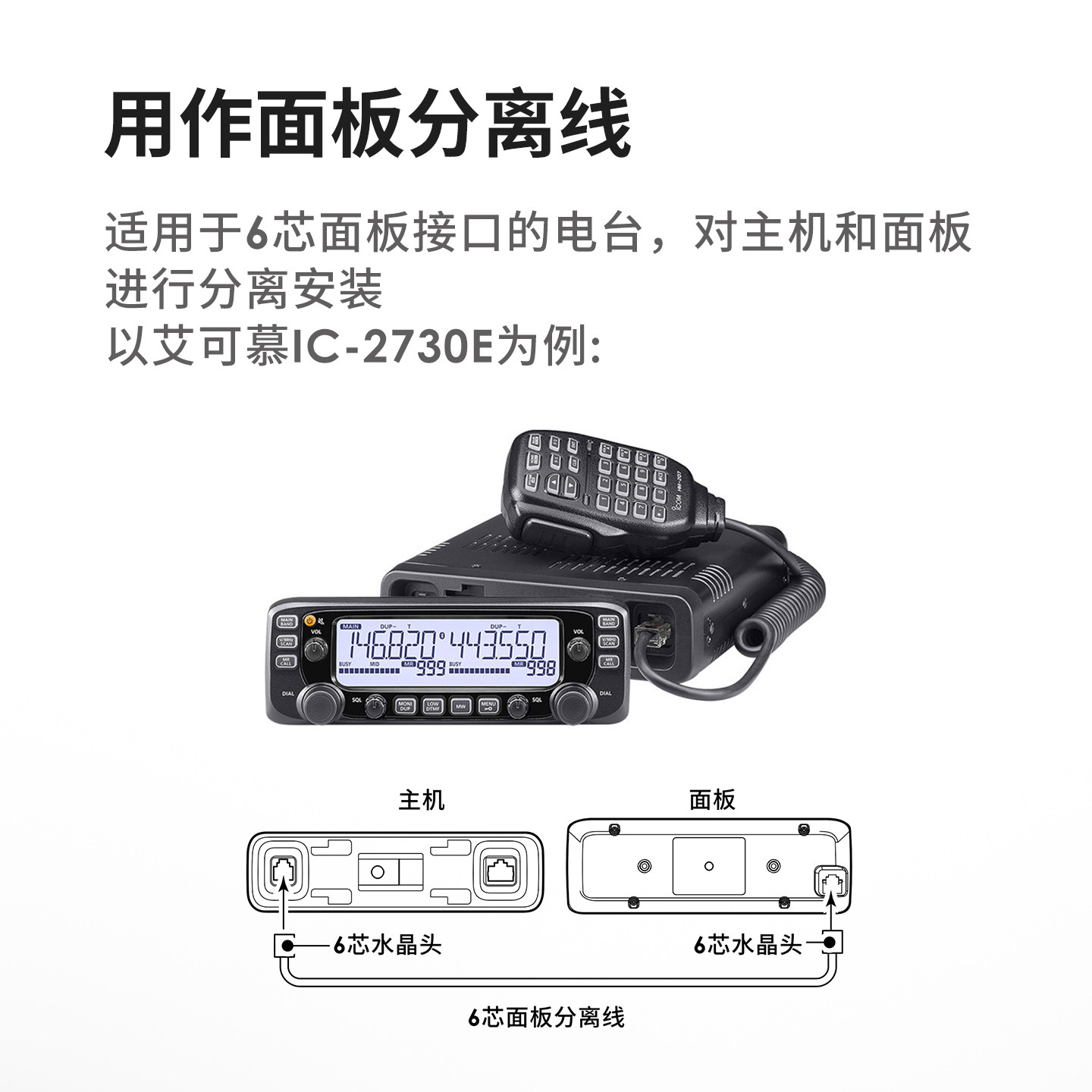 为您提供商品手咪延长线 适用八重洲艾可慕即时通车载电台 面板分离线 6芯圆线的详细介绍,