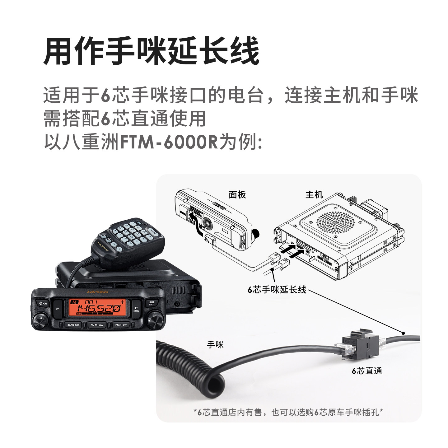 手咪延长线 适用八重洲艾可慕即时通车载电台 面板分离线 6芯圆线由