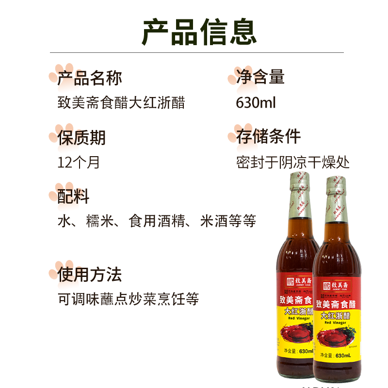 为您提供商品2酿造食醋 云吞饺子蟹醋寿司醋凉拌醋 致美斋大红浙醋630ml 2瓶装的详细介绍,