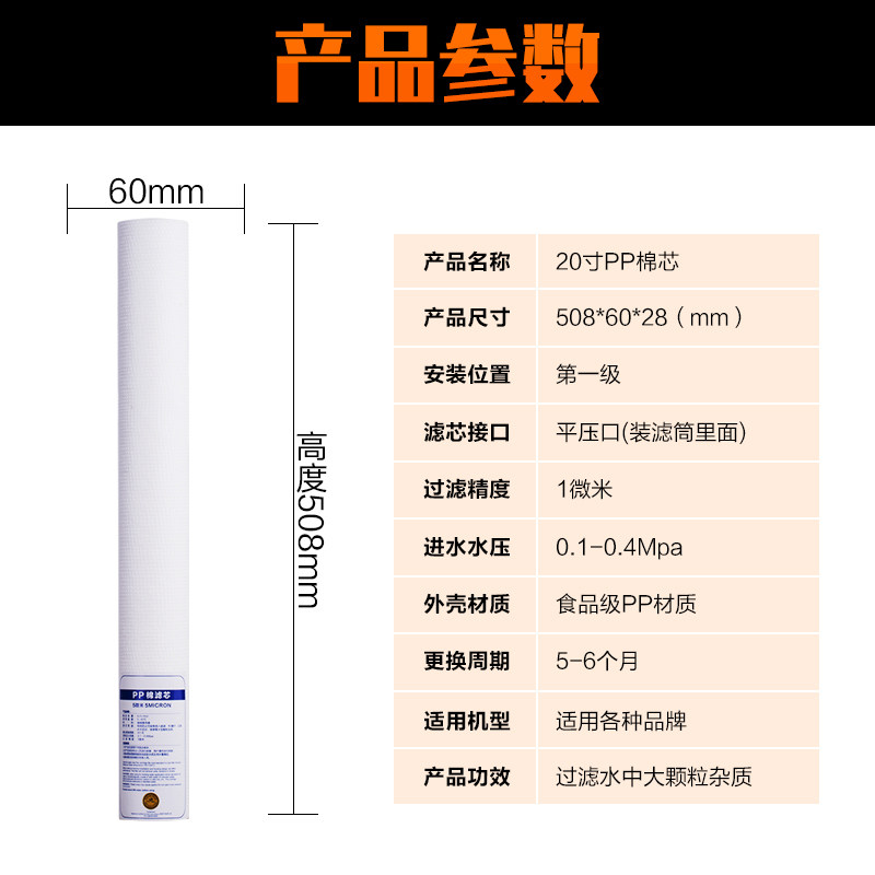 为您提供商品1微米社区售直饮机通用配件 20寸PP棉滤芯商用净水器前置过滤器5的详细介绍,