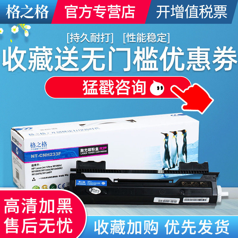 M134FN 格之格CF233A粉盒NT M134FP打印机硒鼓hp33A硒鼓 M134NW M134A CNH233适用惠普M106A M106W由