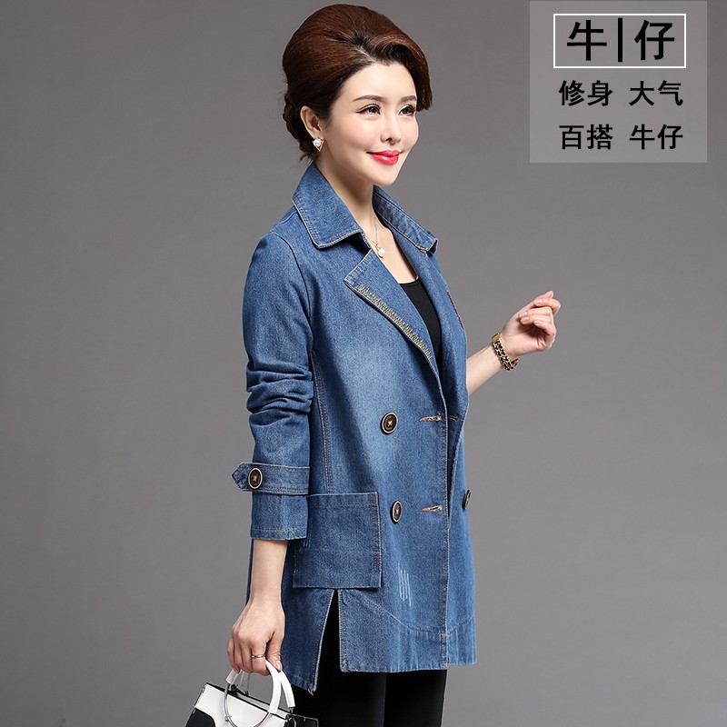 为您提供商品妈妈风衣褂2023新款 婆婆职业百搭遮肉 牛仔外套春秋大码 中老年女装的详细介绍,