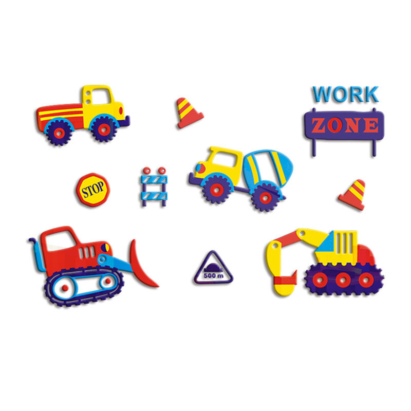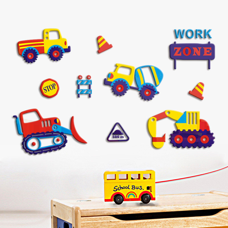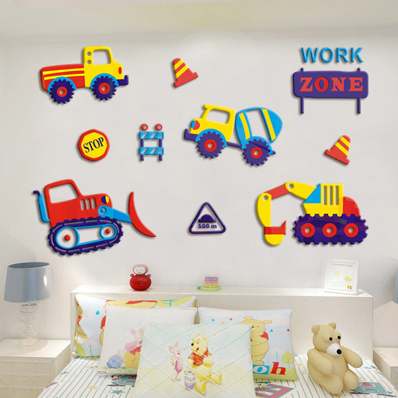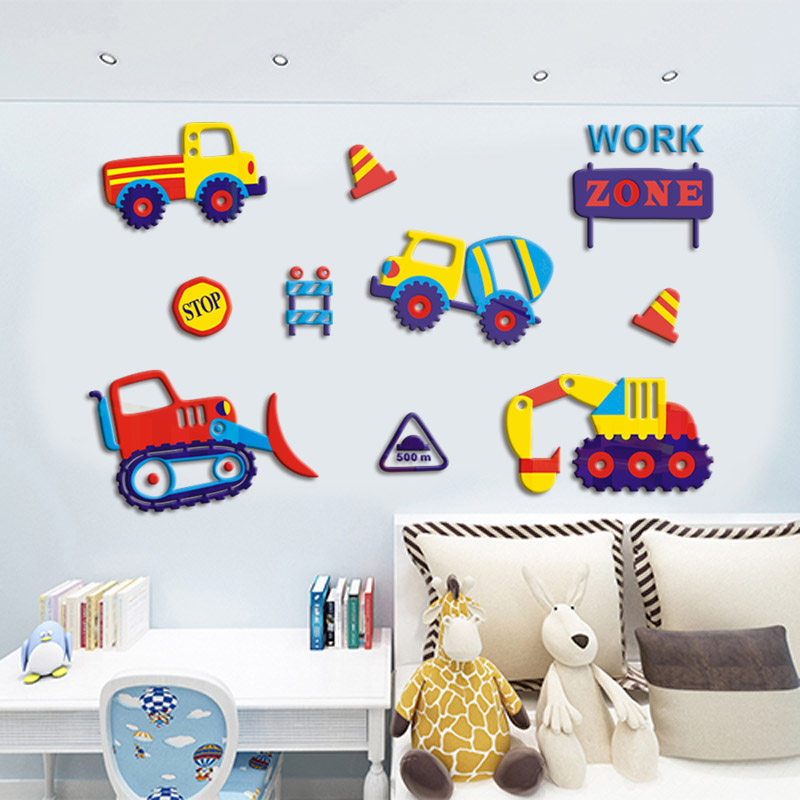 饰墙贴画 卡通工程车3d立体亚克力墙贴儿童房卧室床头幼儿园背景装