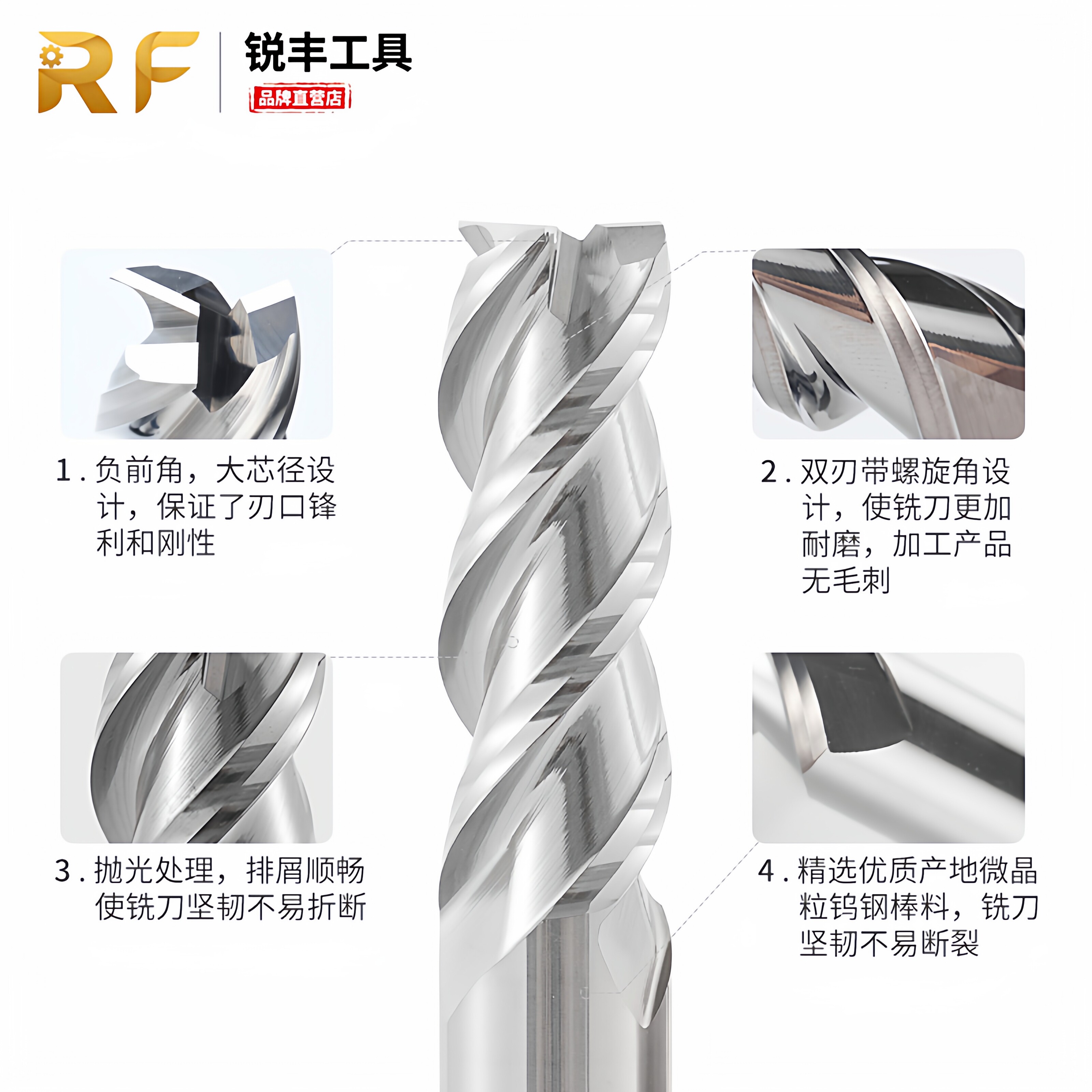 为您提供商品锐丰55度铜铝专用3刃合金镜面铝用高光CNC数控刀具钨钢立铣刀加长的详细介绍,
