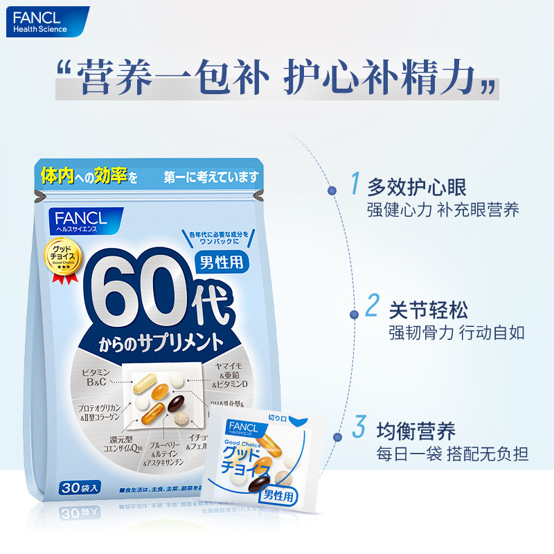 日本FANCL 30袋 包 芳珂男性60岁综合营养包辅酶q10复合维生素由