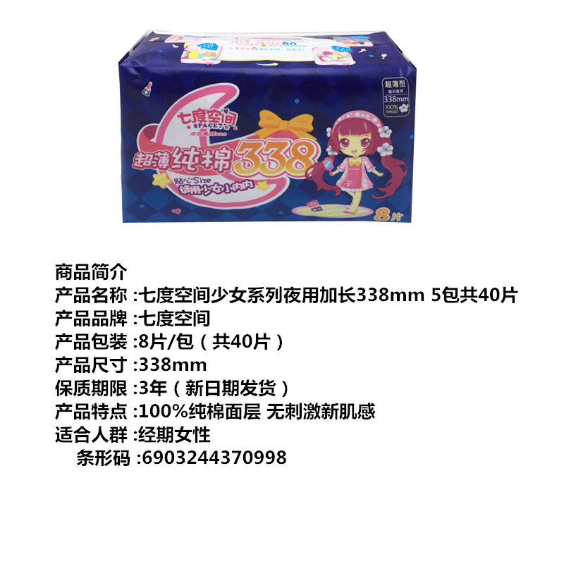 为您提供商品百亿补贴七度空间超薄纯棉夜用加长338mm纯棉40片装 姨妈 官网正品的详细介绍,