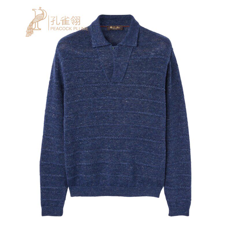 亚麻和棉马球领蓝色长袖 Loro Piana 诺悠翩雅男装 针织衫由