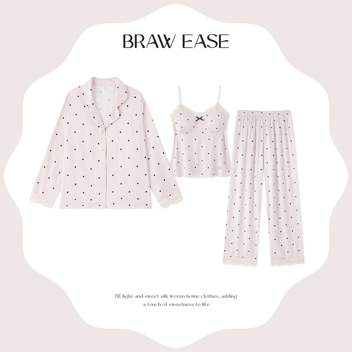 冰丝睡衣女款 秋春三件套长袖 带胸垫家居服丝绸夏季 可外穿 2026新款由