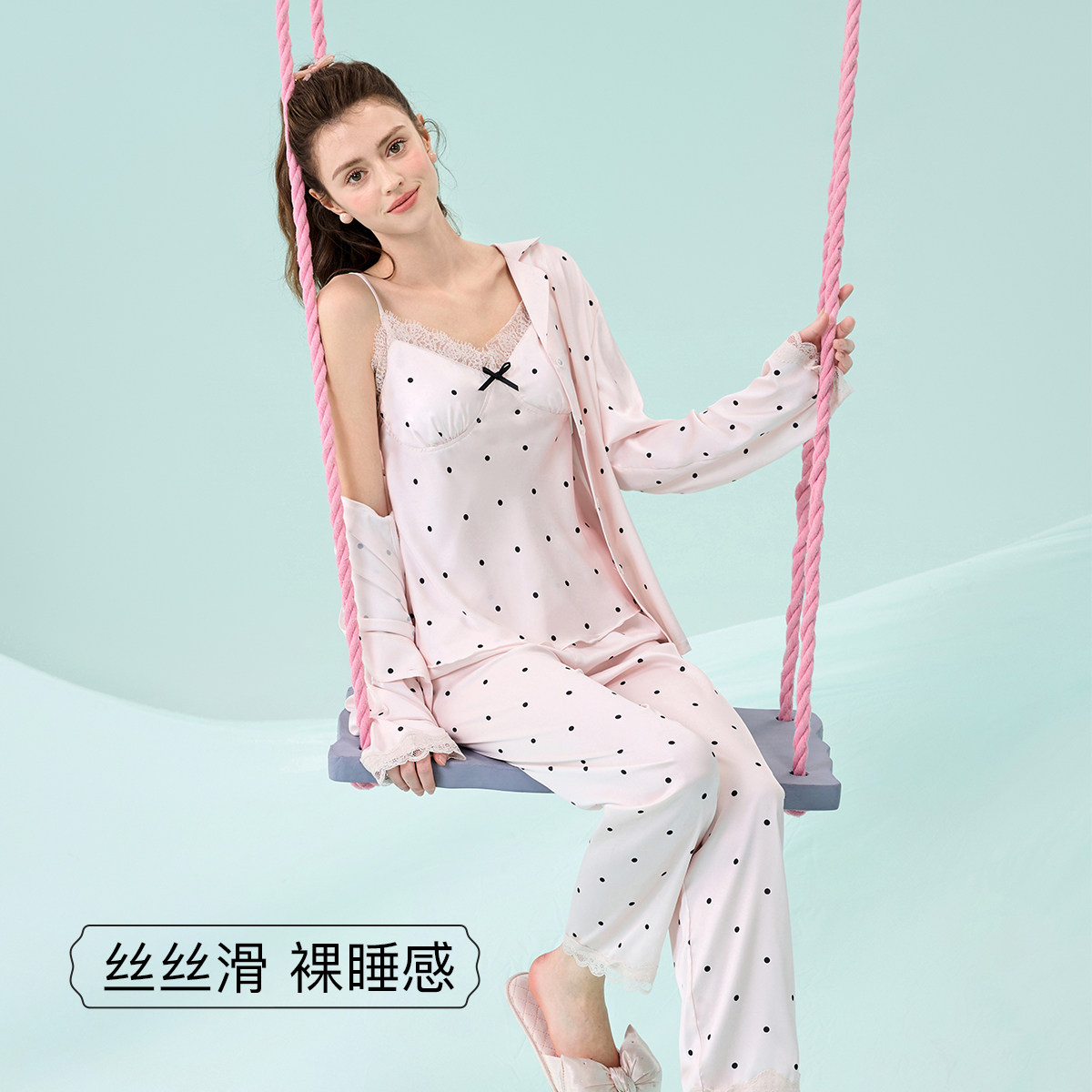 为您提供商品冰丝睡衣女款 秋春三件套长袖 带胸垫家居服丝绸夏季 可外穿 2026新款的详细介绍,
