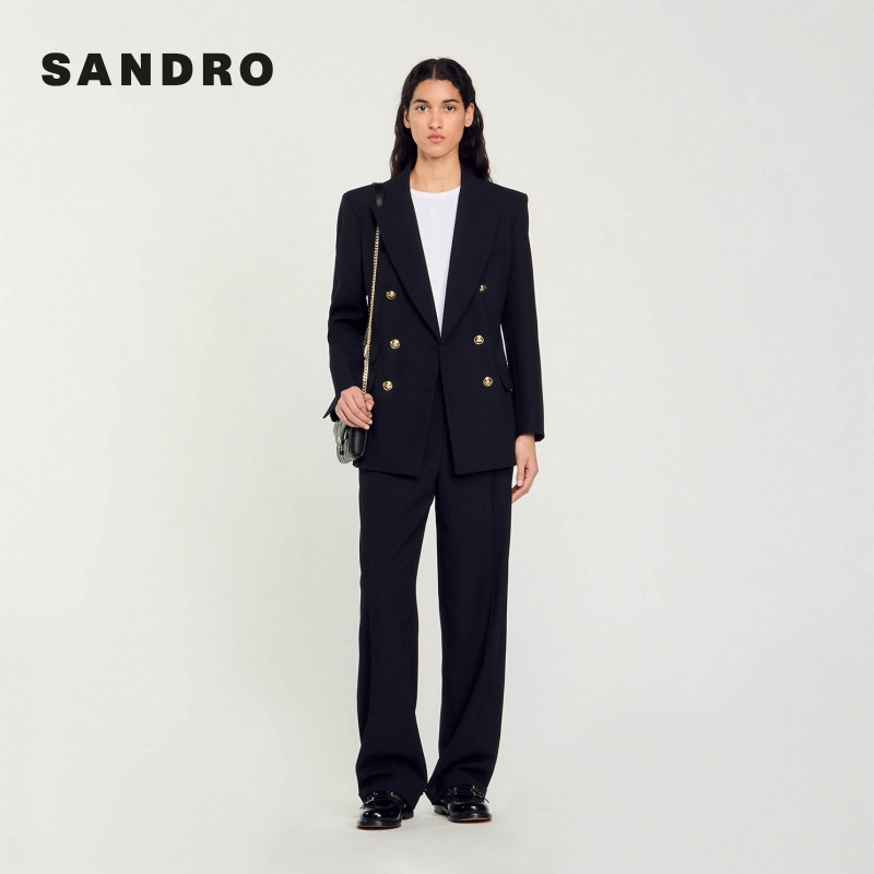 季 法式 通勤高知风黑色双排扣平驳领西装 外套 末7折SANDRO秋冬女装