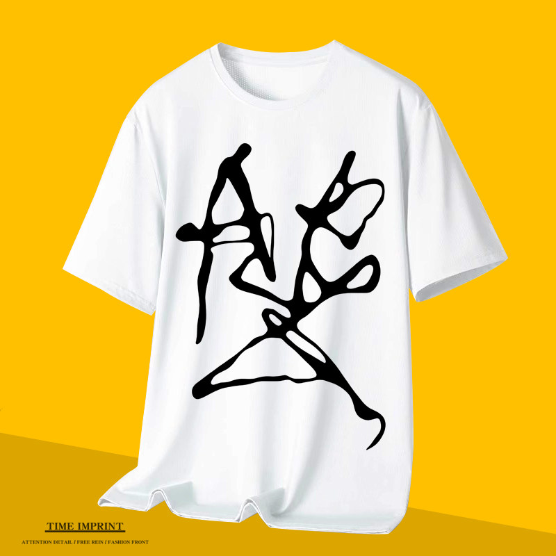 LA短袖 宽松百搭印花上衣白色11 T恤男女情侣落肩袖