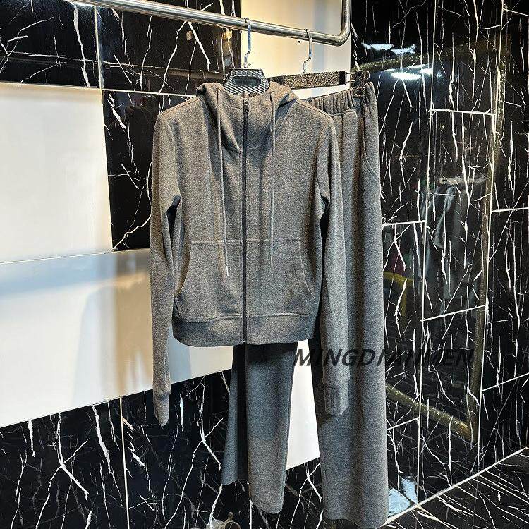 卫衣肥腿裤 2026年春季 新款 休闲运动高领拉链连帽修身 女两件套 套装由
