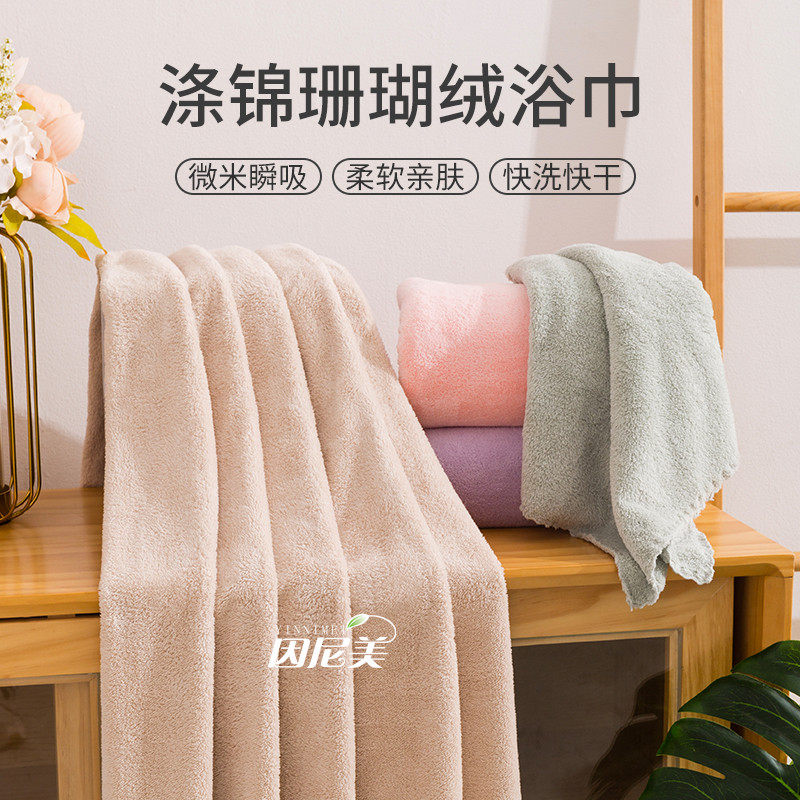 珊瑚绒浴巾男女超强吸水大人小孩洗澡加厚家用干发帽二件套非纯棉由