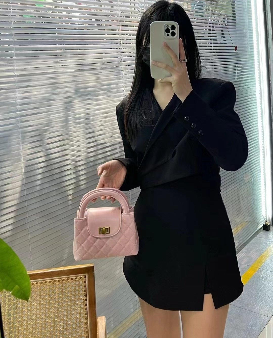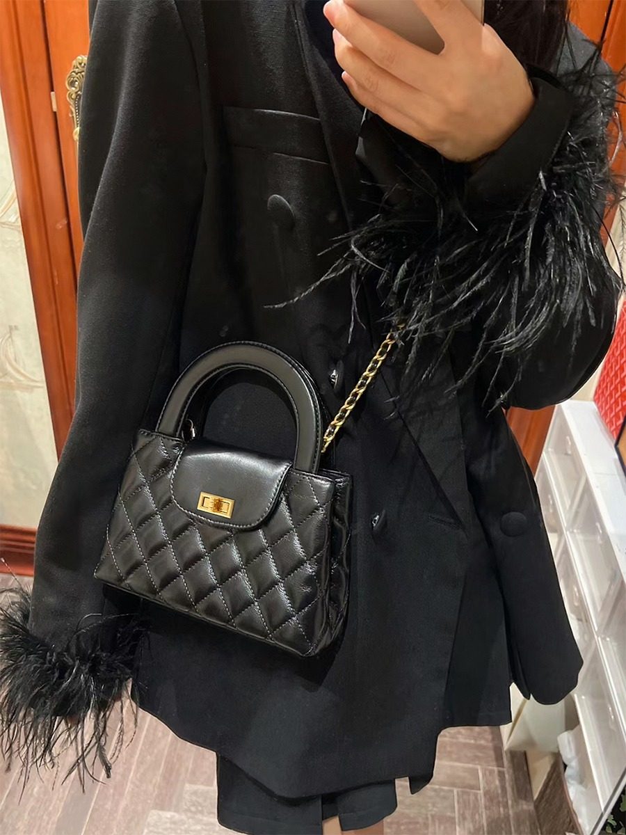 高级感单肩斜挎小包 小香风23k凯莉包真皮菱格链条手提包2026新款由