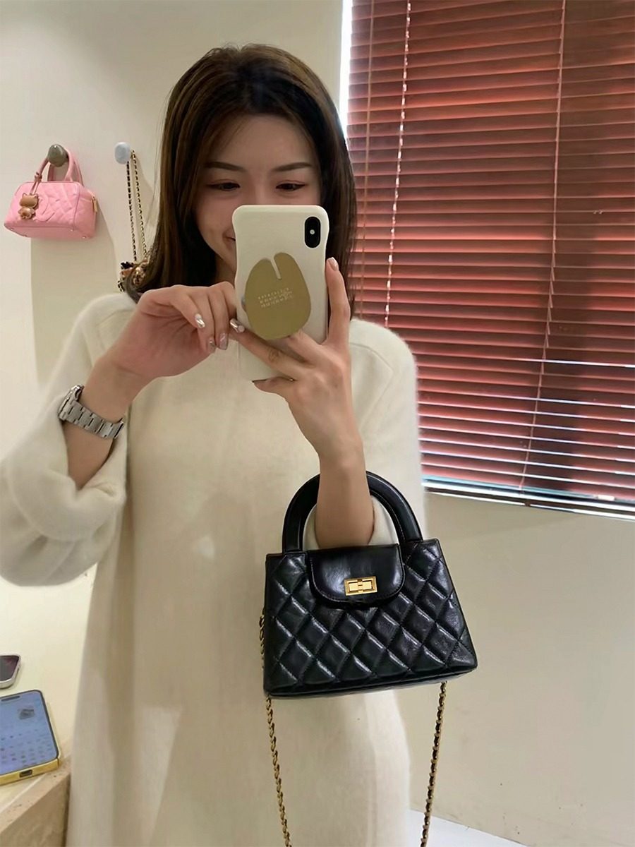 高级感单肩斜挎小包 小香风23k凯莉包真皮菱格链条手提包2026新款