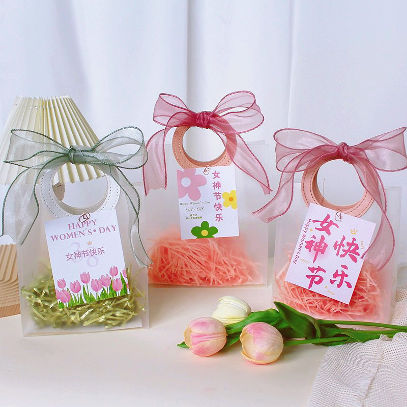 空盒花束伴手礼袋 38女神节礼品袋透明手提袋子三八妇女节礼物包装
