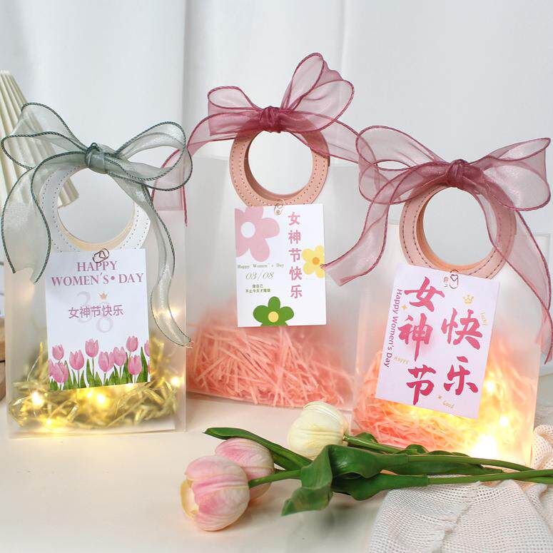 为您提供商品空盒花束伴手礼袋 38女神节礼品袋透明手提袋子三八妇女节礼物包装的详细介绍,