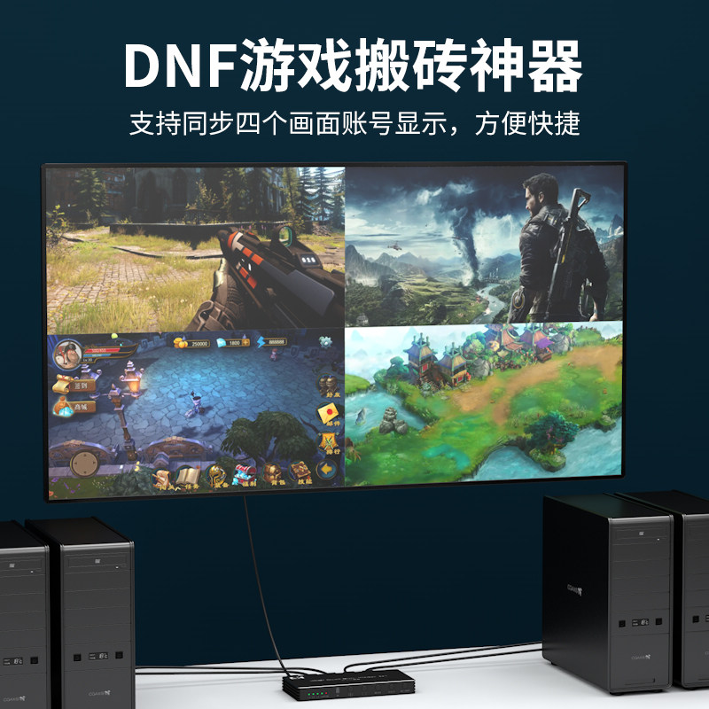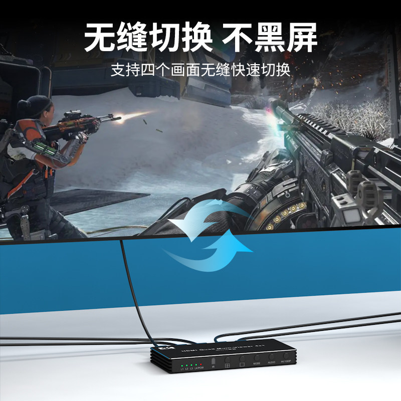 分屏器四进一出4K电脑分频器hdmi画面分割器4口高清视频无缝切换器不黑屏电脑显示器屏幕同步器一体机1080P