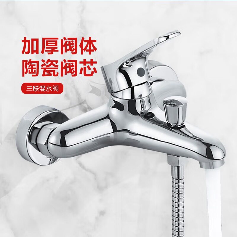 喷头开关浴室浴缸三联淋浴龙头简易 混水阀冷热水龙头全铜花洒套装