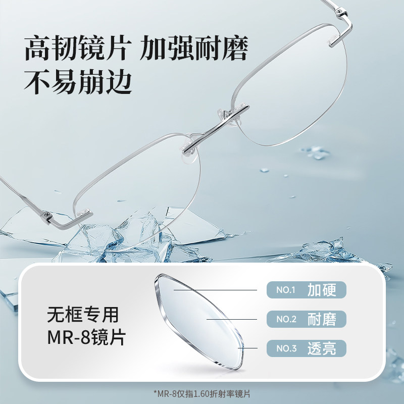 为您提供商品目戏无框眼镜女近视可配度数可选蔡司镜片无边框眼镜框镜架23006的详细介绍,