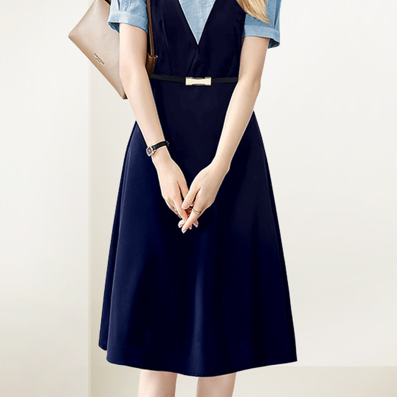 为您提供商品新款 撞色收腰显瘦减龄A字裙潮 假两件连衣裙女2026年夏装 气质衬衫的详细介绍,