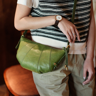 葱木 小众复古植鞣牛皮女包 质感时髦日常小号可颂牛角包女斜挎包