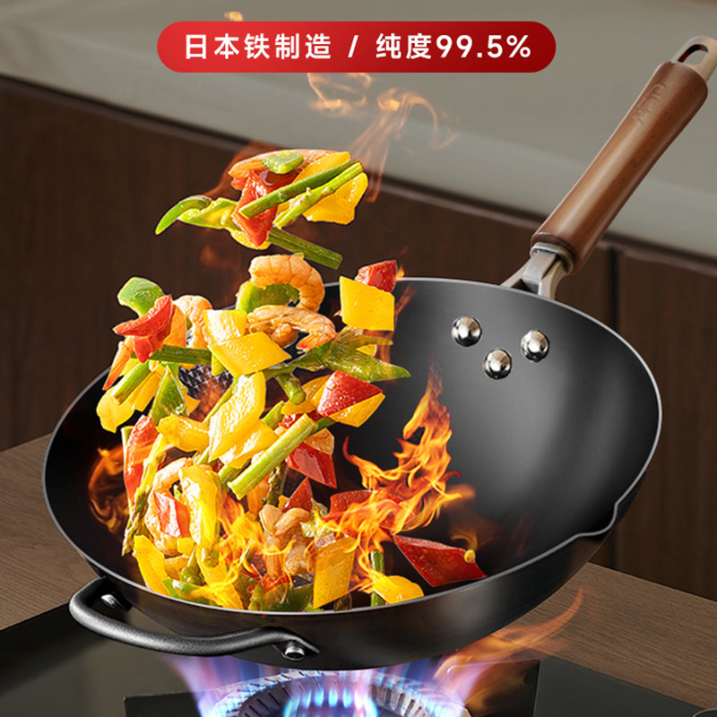 九阳铁锅无涂层炒锅家用炒菜锅不易粘锅电磁炉专用燃气灶旗舰店炊
