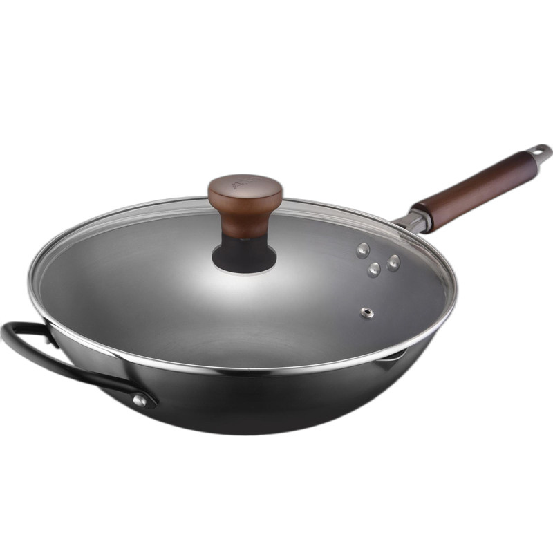 炒菜燃气灶电磁炉平底锅免开锅 爱仕达大铁锅无涂层炒锅家用老式