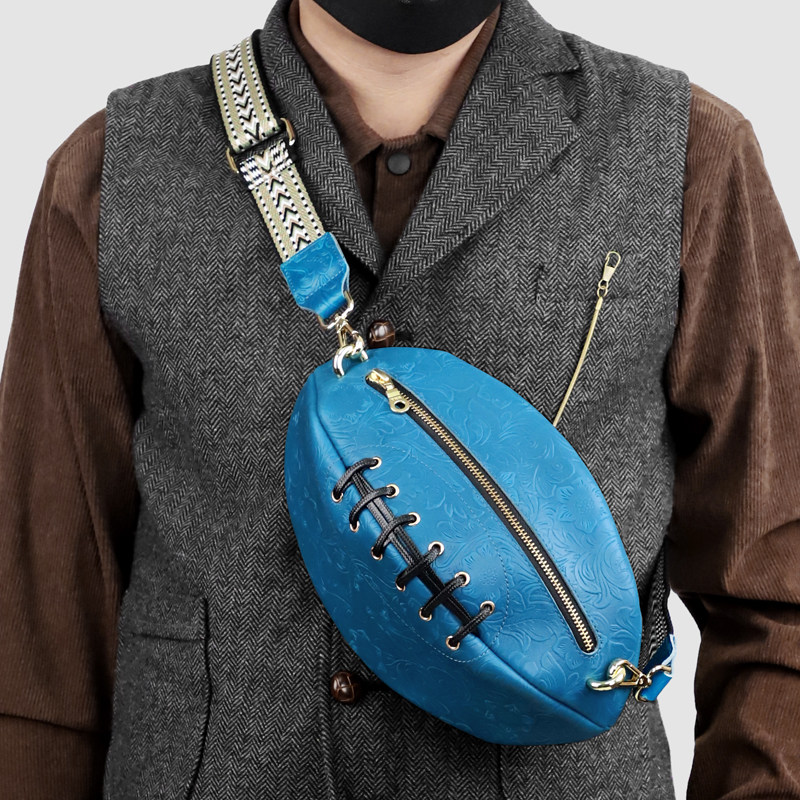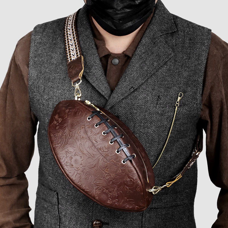 为您提供商品单肩斜跨包手工牛皮复古小背包潮 原创小众真皮橄榄球胸包潮牌男士的详细介绍,