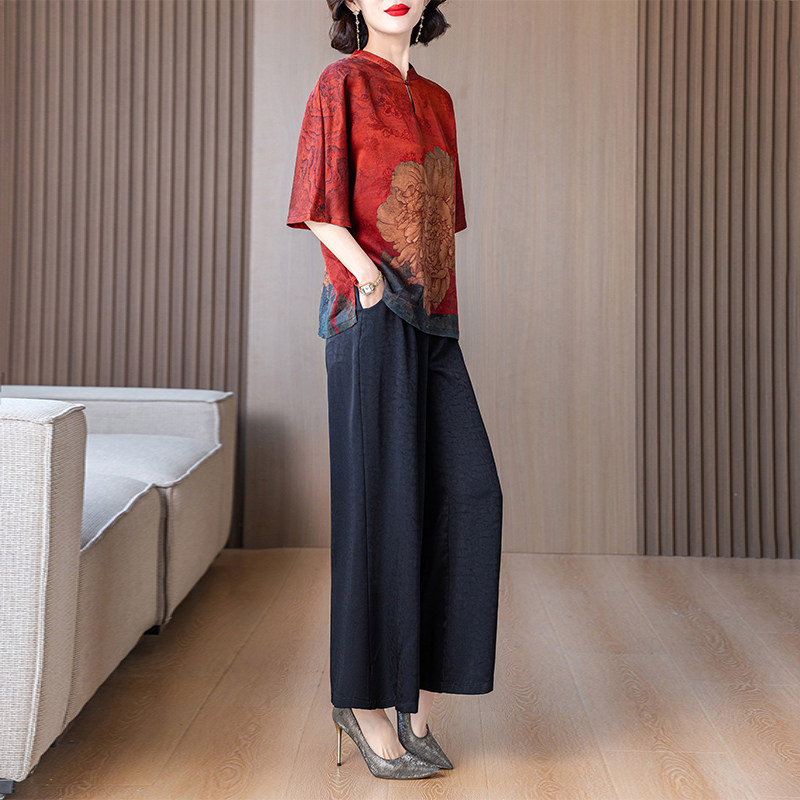 为您提供商品新中式 上衣阔腿裤 中老年真丝桑蚕丝妈妈套装 国风香云纱两件套夏季的详细介绍,