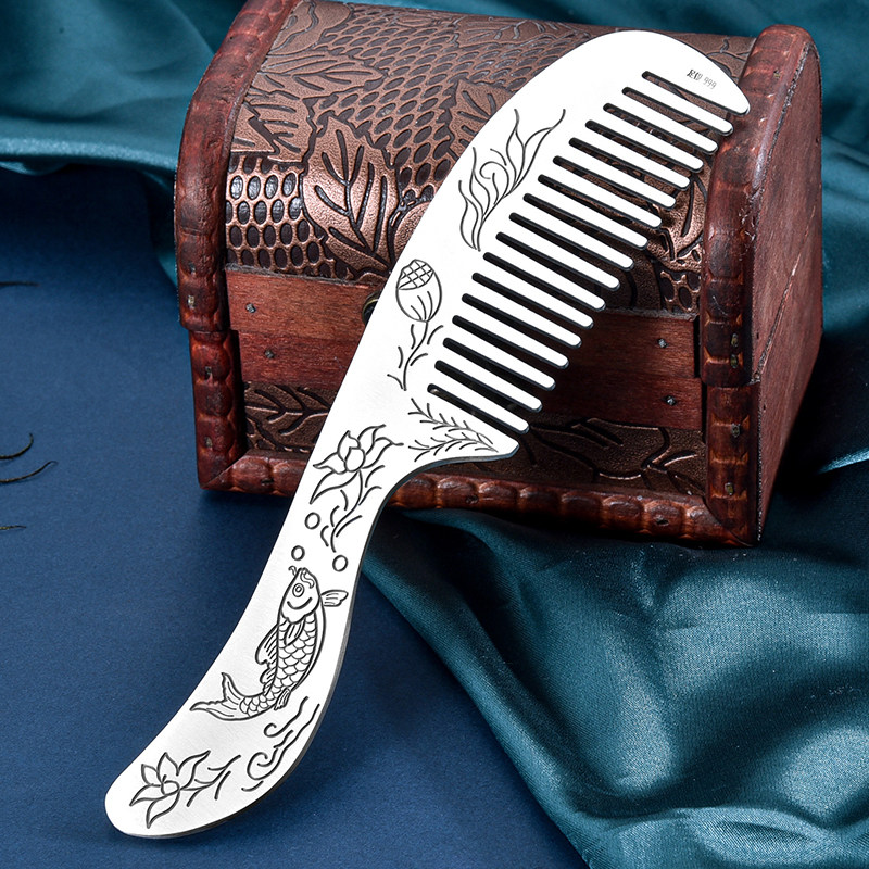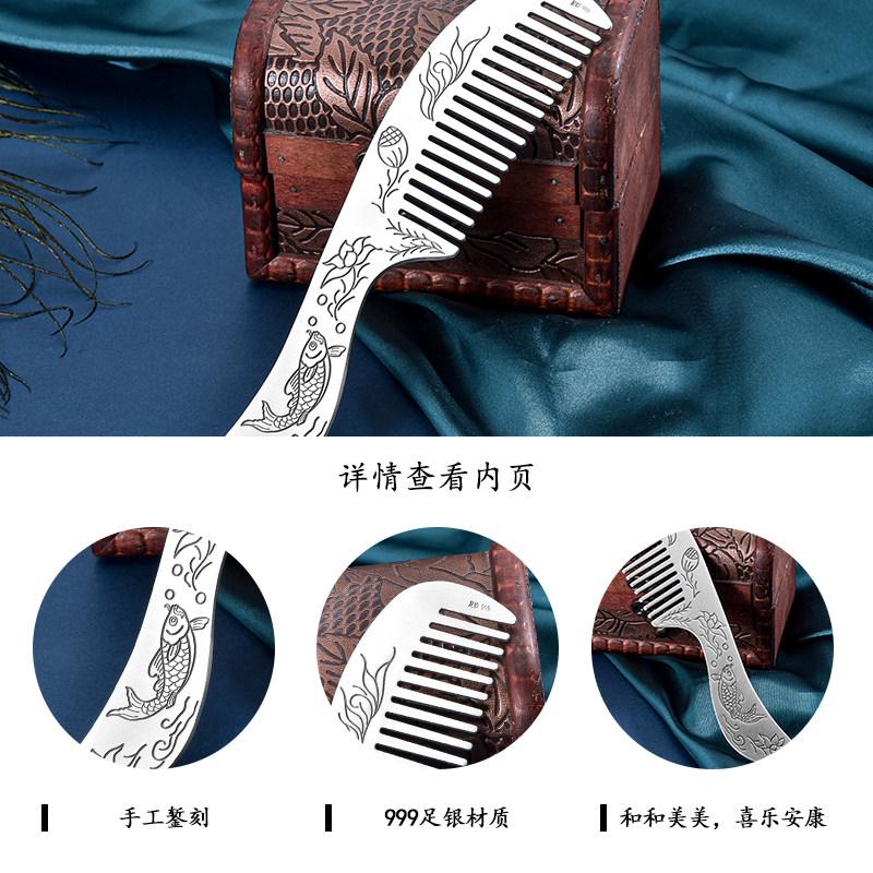 为您提供商品民族风送妈妈生日礼物 S999纯银梳子女士锦鲤荷花足银刘海发梳正品的详细介绍,