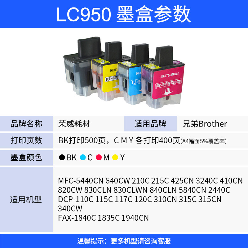 为您提供商品适用brother兄弟LC950墨盒MFC 5840CN打印机 1840C 620CN 215C 2440C 425CN 210C 3240C FAX 640CW 110C 410C的详细介绍,
