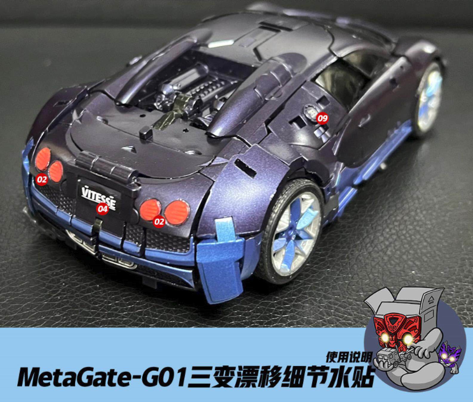 三变战士漂移细节水贴纸 变形玩具汽车人标志 G01 MetaGate由