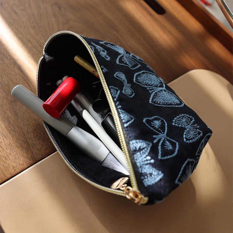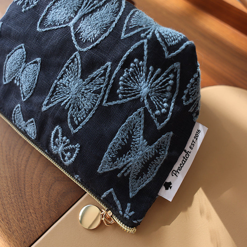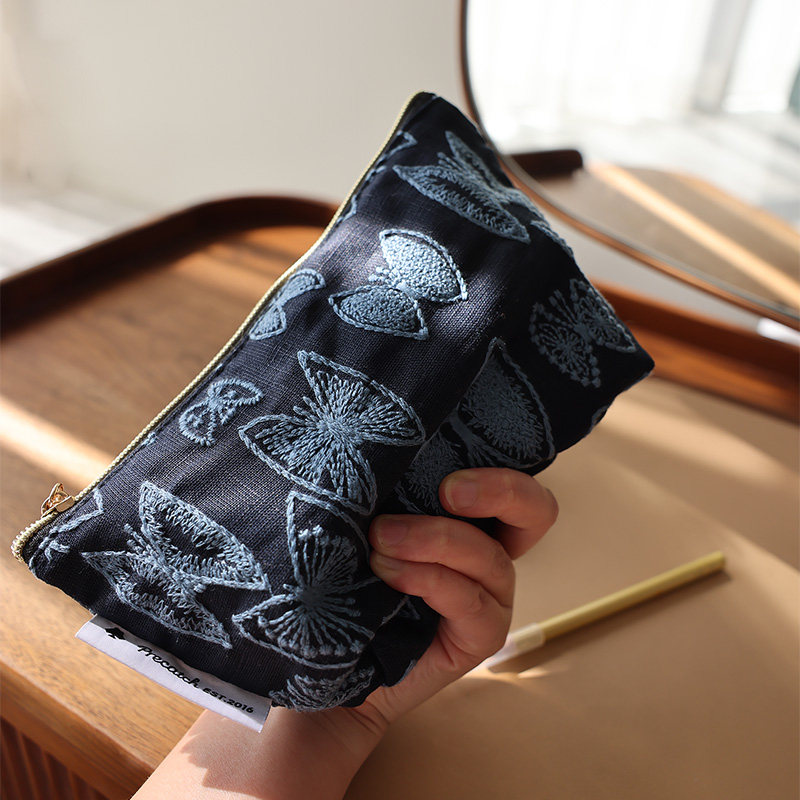 美摘蝴蝶刺绣化妆包手工收纳袋原创布艺小众小号女士随身便携手包