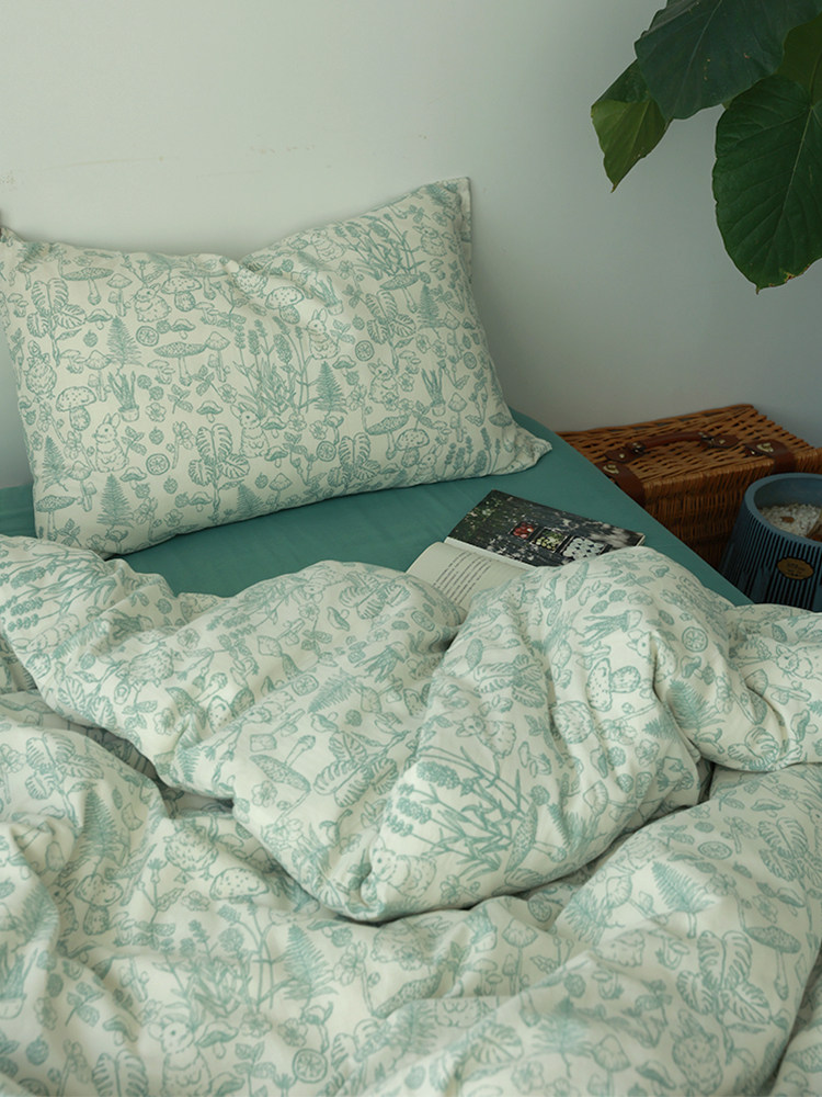 纯棉100双层纱卡通手绘少女透气床单被套床笠三四件套 绿色芭蕉兔